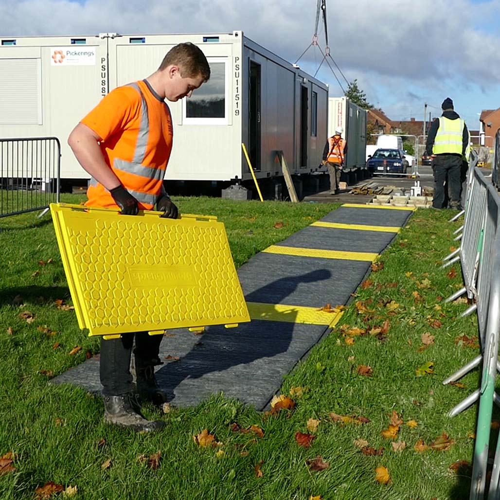 FastCover Plus is a simple and effective matting system for clean, safe pedestrian access across construction sites, public areas, and event spaces. It helps define walkways, reduce slips and trips, and keep mud and debris under control.